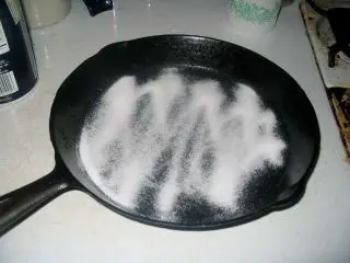 The salt will loosen all the filth and grease, so you can easily remove it afterwards!