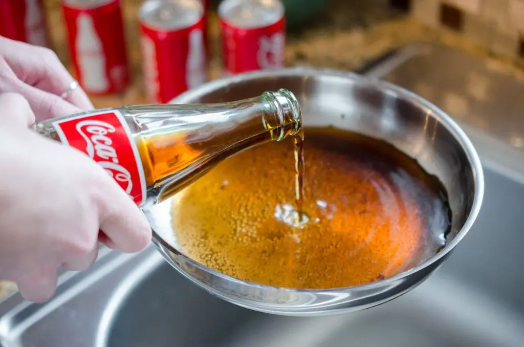 The devastating effect that Coca Cola has on your blood sugar and teeth, it also has on caked pans.
